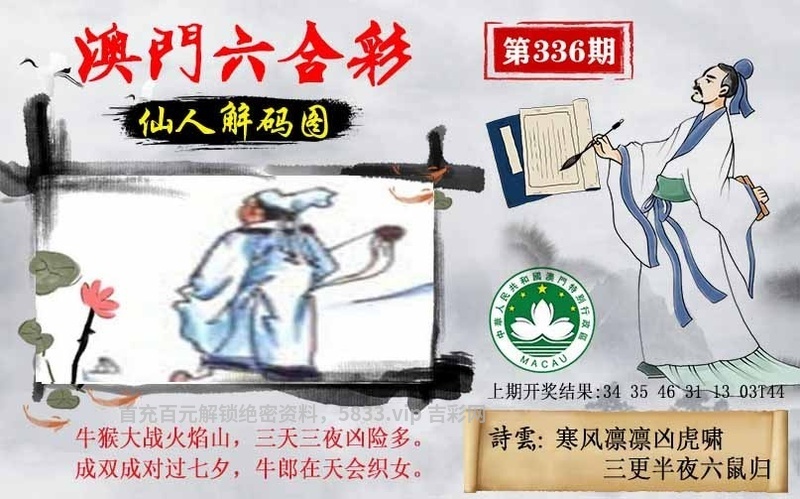 | 336期:双【鼠狗龙马】单【牛蛇羊鸡】开:牛17准 |